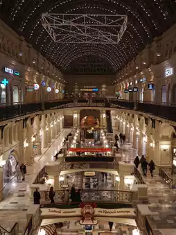 GUM Department Store (ГУМ) is located in Red Square, Moscow. It was built in 1893 and is one of the most famous shopping malls in Russia. This neoclassical building is famous for its glass dome and ornate decorations. It was once a state-owned department store during the Soviet era and is now a gathering place for high-end brands and Russian specialty products. GUM is not only a shopping paradise, but also a symbol of Moscow's history and culture.