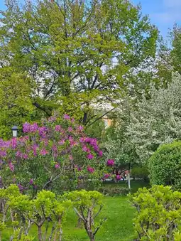 When I visited in the second week of May, the garden was filled with colorful tulips and trees with purple, pink, and white flowers. I don't know much about Russia, so I didn't know what the monuments meant, but I was sure that this garden was beautiful and great for a walk.