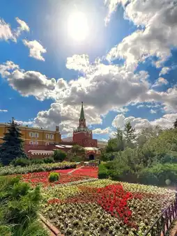 Alexandrovsky Garden (Александровский сад) is located a 2-minute walk from Red Square, the busiest square in Moscow, making it easy to visit while traveling in Moscow, Russia.