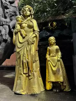 - Bronze female statue near the entrance — symbolizing life and beauty.