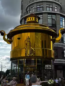 Imagine walking down Old Arbat Street in Moscow, where history and charm come together. Now imagine that right at its beginning stands a giant three-meter-tall golden samovar. This isn't just a decorative object but rather a true symbol of hospitality and Russian culture.