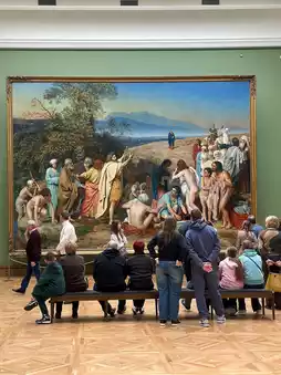 I visited The State Tretyakov Gallery during the May holiday. If you enjoy a quiet gallery experience, holidays are not ideal, as many people also visit this popular museum. Everyone should visit this museum to truly appreciate Russian art and culture, in my opinion. Tickets can be purchased online or at the museum. Buying them online can spare you from long queues. You don't need an audio guide, but if interested, you can buy one with your ticket. I always opt for the audio guide since it offers a great opportunity to learn more about art. In May 2025, ticket prices were 700 rubles; however, I'm uncertain if this is the universal price. Prices for foreigners might vary. For my first visit, I chose the regular exhibition. With numerous paintings and sculptures across two floors, it takes about 4 hours to view it all, but I only explored the second floor (halls 1-31), spending 2 hours there. You don't have to tour the entire exhibition in one go; you can return, but you'll need another ticket. The second floor features works by famous Russian artists like Ivan Shishkin, Ilya Repin, Arkhip Kuindzhi, Mikhail Vrubel, Ivan Aivazovsky, and others. Each hall provides artist information on large tablets in multiple languages, although the painting titles are only in Russian. In the end, if you adore classical art, you'll thoroughly enjoy your visit!
