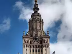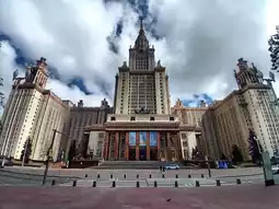 Soviet-era facades and modern skyscrapers coexist along the street.