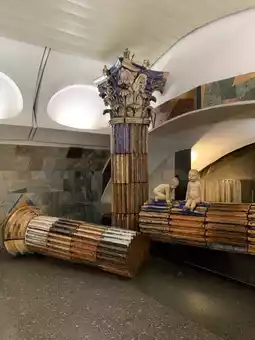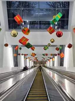 One of the deepest stations globally, housing massive mosaic compositions depicting heroic deeds from World War II.