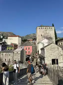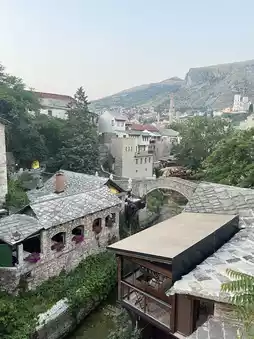 As you cross the bridge, the sound of the river flowing beneath you and the view of the surrounding historic houses create a captivating atmosphere. Standing on the bridge and admiring the view, especially at sunset, is a unique experience. Easily accessible by foot from Mostar city center, the bridge is a must-see for any visitor to Bosnia and Herzegovina.