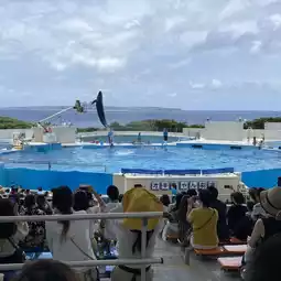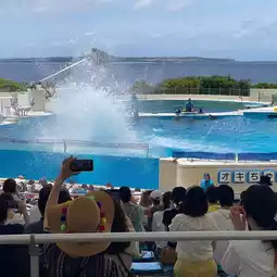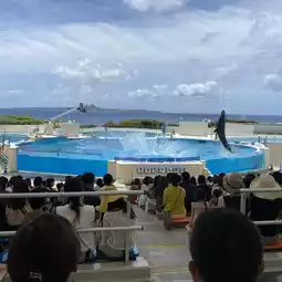 You can see the dolphin show for free. It is located in Ocean Expo Park, the site of the Churaumi Aquarium. Just watching Oki-chan and his friends' show while looking at the blue sea will make you smile.