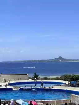 In addition, there is a dolphin theater performance that can be watched without tickets. The sea and Inoe Island behind it form a magnificent and unique dolphin show!