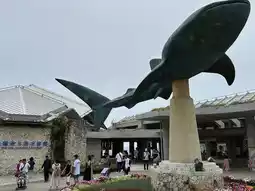 The whale shark is really huge! It felt like being chased by the blue sky and white clouds in the aquarium. Someone stood next to the whale shark for scale, making it look even bigger! I wanted to visit the Kuroshio Sea Café, but it was too crowded, so I gave up. Make sure to get in line early next time to get a number ticket.