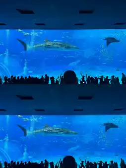 The most worth seeing in the aquarium is the Kuroshio Sea on the second floor. There is the world's largest aquarium tank. There is a nine-meter-long whale shark living in it. In the Crayon Shin-chan animation, Shin-chan also came to see this whale shark!