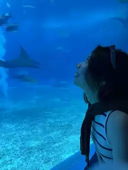 Tickets are 2,180 yen for adults and 4,360 yen for an annual pass, which is suitable for multiple visitors. Surrounding facilities include the Dolphin Theater and the beach. It is recommended to take the park shuttle bus for a tour. The in-house restaurant "Ocean Blue" is located near the water tank and offers light meals with a sea view, but you need to reserve a seat in advance.