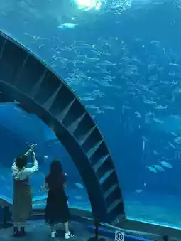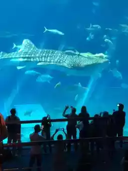 If you're in Okinawa, you absolutely must not miss the Churaumi Aquarium. The highlight here is the massive tank, home to the star attraction, a giant whale shark and stingrays swimming among schools of colorful fish. It's a real pleasure to watch. It's truly breathtaking, as if you've truly entered the underwater world. 🥹