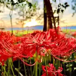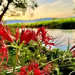 I went there after work, so I was able to take a picture of the red spider lilies with the sunset in the background ✿゚❀.(*´▽`*)❀.゚✿