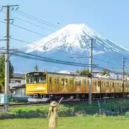 4. Shimoyoshida Station: Continue to take the train to Shimoyoshida Station. It is recommended to sit at the front of the train. In the section from Gekkoji Temple to Shimoyoshida, Mount Fuji will appear right in front of you, and the scenery is super beautiful.