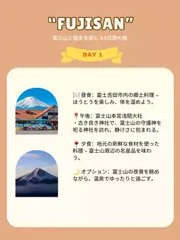 🚖 Evening: Stroll around the foot of Mt. Fuji – Relax at a hot spring inn in the evening.