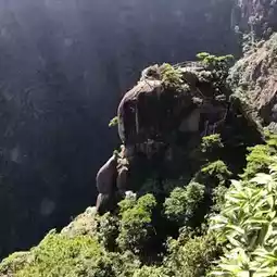Peacock Rock with Crane-longevity Deck (photos 1 to 5) is one of the main sightseeing platforms in Longevity Garden and a place to worship Kwan-Yin Bodhisattva. It is said that cranes represents longevity in Chinese traditional culture and that immortals often play the zither under the pine tree and cranes tend to dance to the melody. So the pine tree and the crane is an harmonious picture which convey auspiciousness. They also say that people can receive Kwan-Yin’s blessings here.