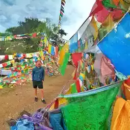 Amazing spot for sunrise / sunset. 40rmb entry and make sure you take a walk around with the 1000s of prayer flags all around. great place to grab a coffee / drink and see the mountains.