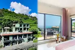 The Half-Mountain Homestay is built into the hillside, featuring a minimalist white design with floor-to-ceiling windows and a viewing terrace. You can watch the sunrise and sea of clouds right from your bed, and fall asleep to the sound of waves at night. Some rooms even come with private soaking tubs, letting you enjoy the breathtaking ocean view while bathing—pure romance!