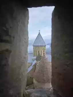 ⛪ Holy Trinity Church in Stepantsminda: This church stands majestically surrounded by mountains. Standing here, you can overlook the entire town and feel the magnificence and sacredness of nature.