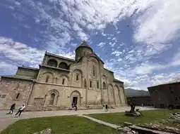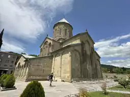 Taxi drops you back in town. Walk 5 mins to ✨Svetitskhoveli Cathedral✨ (free entry; scarf needed again). Marvel at the 1,000-year-old vibes and the "robe pillar." Then stroll 10 mins to ✨Samtavro Convent✨—smaller but peaceful, with St. Nino’s burial spot and a cute garden.