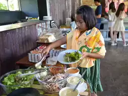Tent-style accommodation in Khao Yai, located on Thanarat Road, near the market, easy to find food. Although it is on the road, the accommodation is quiet and natural. Inside the tent, there are complete facilities, air conditioning, TV, refrigerator, water heater.