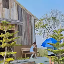 Baan Rai Lom Bon, a feel-good place that is both a cafe and a camping ground. A wooden barn-style house on a hill surrounded by mountains, perfect for taking some chill photos. 🌳✨