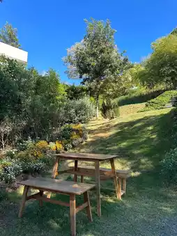This is a cafe with good vibes, good atmosphere, peaceful, located in the middle of the mountains. When you enter the cafe, it is striking because the cafe is minimalistic, white, contrasting with the green of the mountains and the sky, perfectly matching.