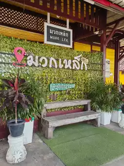 - **Atmosphere:** A resort cafe surrounded by nature, surrounded by gardens and large trees. You can sit and watch the view of the old Mok Lek Railway Station, the elevated railway, with a mountain range as a backdrop.
