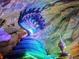 📍Entering the cave, you'll find the Naga Cave, which features Naga statues in several corners. It's beautifully lit, and visitors can enter to pay their respects and pay homage. The cave is not very large, and there are lights along the way.