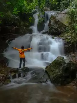 • Krok E-Dok Waterfall has 7 tiers, each with its own charm. Some tiers have pools for swimming, while others feature long streams amidst towering rocks, creating a breathtaking view.