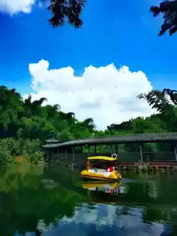 ❇️The Yongxing Lake deep in the bamboo sea, also called Tianchi, is even more dreamy🌊. Take a leisurely stroll along the lake, the lake water is like a mirror, reflecting the blue sky and white clouds, like a natural ink painting☁. As the breeze blows, ripples appear on the surface of the lake, which contrast with the swaying green bamboos, creating a beautiful scene. Along the way, it feels like being in a magical kingdom of animals and plants. Countless small geckos and four-legged snakes shuttle through the grass, adding a bit of agility and vitality to this quiet world.
