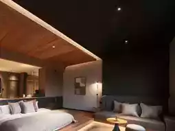 2⃣ The room is decorated with Zen style, and the entire courtyard is designed as a siheyuan (traditional Chinese courtyard), centered around a water feature, lively and elegant. Each room has extra-large floor-to-ceiling windows, letting in comfortable sunlight. The tea set on the windowsill is the perfect finishing touch. Brew a pot of tea, watch the bamboo sea outside, full of Zen vibes, instantly calming your mind~