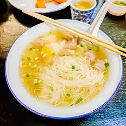 For us, I must say it was amazing. A shop that looks ordinary, but the taste is extraordinary. Very delicious. The congee and vermicelli are very well-rounded. The grilled meatballs are normal, but what's amazing is their dipping sauce. It's very delicious. The toast smells good from afar. Crispy outside, soft and juicy inside.