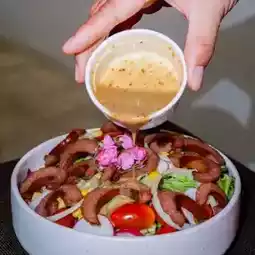 ✨️In addition to pizza, He also has other must-try dishes such as sausage salad, grilled beef steak with jaew sauce, cream of mushroom soup, beef fat fried rice, BBQ beef/chicken/pork. Everything is delicious. 😋