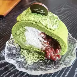 • Matcha Roll - finely textured green tea cake with mild sweetness.