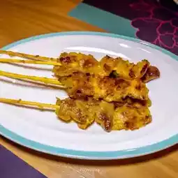 🍢️ Lue Satay – Pork marinated in turmeric and lemongrass, fragrant, sweet, and creamy, a perfect Peranakan dish.