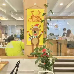 ✨ The atmosphere of the shop is cute, very inviting, decorated in white and yellow tones, very cute, and also decorated with a Christmas theme, pleasing to content lovers.