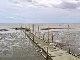 Don Hoi Lot is a sandbar located at the mouth of the Mae Klong River. It is formed from sedimentation of soil mixed with sand, or what the locals call "Sai Khi Ped". It is approximately 3 kilometers wide and 5 kilometers long. Many types of shellfish live on the sandbar, including razor clams, cockles, mussels, duck-billed clams, and cockles. However, razor clams are the most abundant, making it a highlight of this tourist attraction.