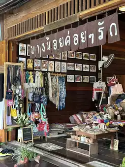 The conclusion is, "It hasn't arrived yet!" Asking the locals, they told us that the arrival and departure times are set by the locals, and if you miss a turn, you'll be left waiting in vain. But that's okay, we found another great find: the Mae Klong Riverside Walking Street, right near the train station. The atmosphere is wonderful, it's a relaxing stroll, and there are many cute shops. And the one that caught our eye was...