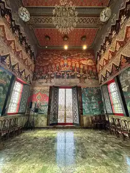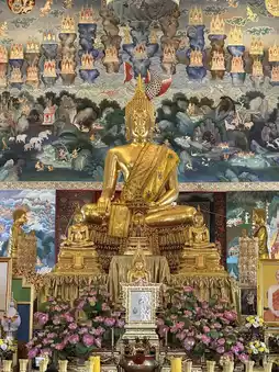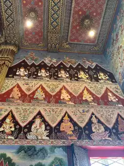 What I must tell you is that the chapel of Wat Chulamani isn't just a beautiful temple. The murals inside are incredibly stunning, stunningly beautiful. The paintings depict the life of the Buddha and various Buddhist stories, meticulously painted by ancient craftsmen. Construction began during the reign of King Rama V and took decades to complete. It's a true treasure that some people who come to worship only for the sake of seeing would be a real shame.