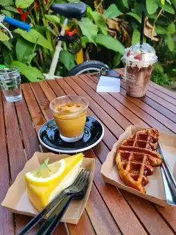 The highlight here is the coffee. They roast their own beans daily, and the aroma wafts throughout the shop. They offer a wide selection of coffee beans from around the world, both Thai and international. If you're not sure where to start, talk to the baristas. They'll recommend a coffee that suits your style. For those who prefer a less intense coffee, try the Dirty. It's absolutely amazing! The strong coffee goes well with cold milk. Or if you prefer drip coffee, they have a wide selection to choose from.