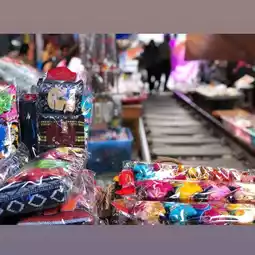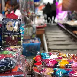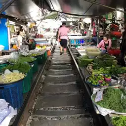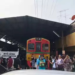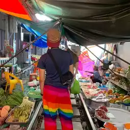 Take the 10 baht train to visit Rom Hub Market and take street art photos.