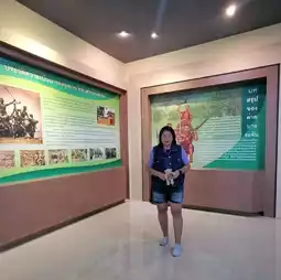 The first room, Biography of the Heroes of Bang Rachan, displays a model of Bang Rachan Camp, including details of the Burmese march route, as well as tactics for dealing with the Burmese soldiers. In the center of the room, there are models and biographies of important heroes of Bang Rachan, such as Phra Ajahn Thammachot, Mr. Taen, Mr. Thong Men, Mr. Chan Nuat Khiao, records and details. Important events in the 8 battles, the innermost part of the room displays ancient weapons and tools, such as four-handled jars, kettles, chiseling axes, throwing axes, etc.