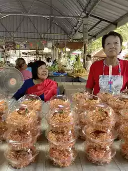 Finally, we filled our bellies at the "Must-See Market." Strolling through the pleasant atmosphere, we found a wide variety of delicious food, including savory and sweet treats, snacks, drinks, local specialties, and souvenirs. Enjoy the freshness of the vendors, each dressed in their own unique traditional attire. They all wore vibrant colors, reflecting their unique attire, and they smiled warmly and were friendly. The prices were great, making it easy to buy quality goods. They provided shady seating areas, so you could enjoy a refreshing temple experience with your purchases. You'll be satisfied and smiling with satisfaction.