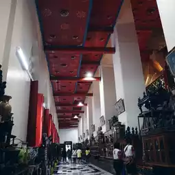 Inside the temple, there are many sacred objects for you to worship and ask for blessings, such as a large statue of Luang Pho To and the Bodhisattva Guan Yin.