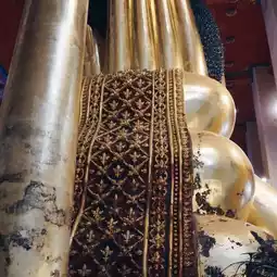 Walking inside, the real reclining Buddha is inside the temple, which has a beautiful Sukhothai-style Buddha image. It is very large and 42 meters long.