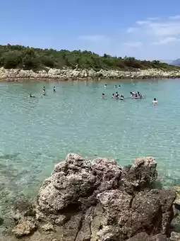 Besides swimming in crystal-clear turquoise waters, visitors can explore the island’s pine-covered hills, ancient olive trees, and archaeological ruins. The entire island offers a peaceful atmosphere, perfect for a relaxing day trip.