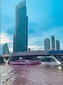 2️⃣Take the BTS to Saphan Taksin MRT Station, walk straight out of Exit 1, and you will see the sign for Sathorn Pier Ferry Terminal. Turn right and cross a small bridge, and you will see the ticket office.