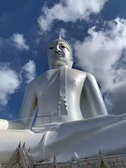 The Great Buddha, "Phra Chao Yai Kaew Mukda Sri Trairat," a large Buddha image in meditation posture, sits atop the mountain and is revered by the people of Mukdahan.