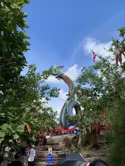 The large Naga sculpture, "Phra Sri Mukda Mahamuni Sri Nakarat," in its beautiful green and blue colors, has become a popular photo spot for tourists.
