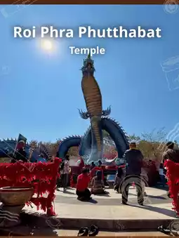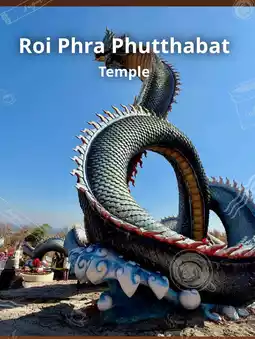 Another must-see highlight is the large Naga statue snaking in the courtyard below the Big Buddha. This Naga is called "Phaya Sri Mukda Mahamuni Nilpal Naga Raja," and its shimmering blue-green body, adorned with shiny scales, gracefully curves yet exudes elegance and power.